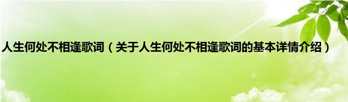 本文关于人生何处不相逢歌词的基本详情介绍就讲解完毕,希望对大家有所帮助。