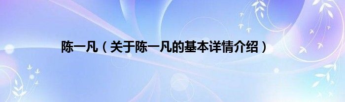 本文关于陈一凡的基本详情介绍就讲解完毕,希望对大家有所帮助。
