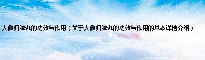 人参归脾丸的功效与作用(关于人参归脾丸的功效与作用的基本详情介绍)