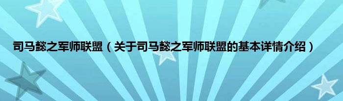 本文关于司马懿之军师联盟的基本详情介绍就讲解完毕,希望对大家有所帮助。