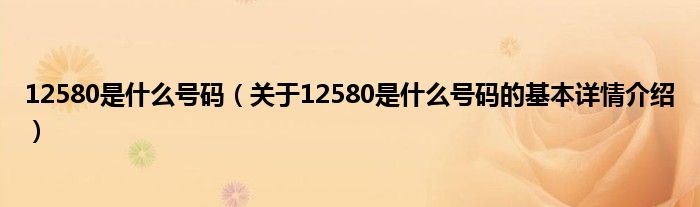 12580是什么号码(关于12580是什么号码的基本详情介绍)