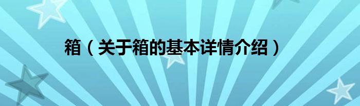 本文关于箱的基本详情介绍就讲解完毕,希望对大家有所帮助。