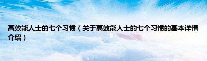 本文关于高效能人士的七个习惯的基本详情介绍就讲解完毕,希望对大家有所帮助。