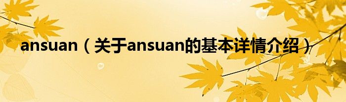 本文关于ansuan的基本详情介绍就讲解完毕,希望对大家有所帮助。