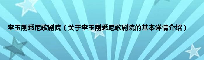 李玉刚悉尼歌剧院(关于李玉刚悉尼歌剧院的基本详情介绍)