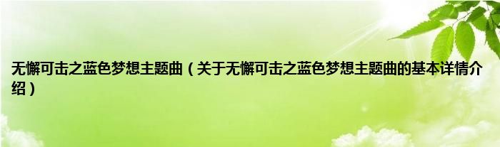 无懈可击之蓝色梦想主题曲(关于无懈可击之蓝色梦想主题曲的基本详情介绍)