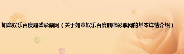 如意娱乐百度鼎盛彩票网(关于如意娱乐百度鼎盛彩票网的基本详情介绍)