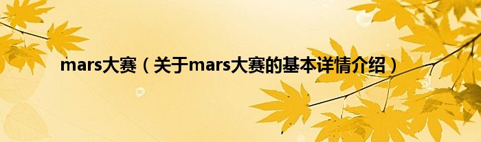 本文关于mars大赛的基本详情介绍就讲解完毕,希望对大家有所帮助。