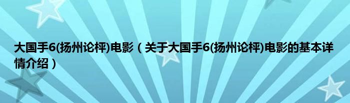 大国手6(扬州论枰)电影(关于大国手6(扬州论枰)电影的基本详情介绍)