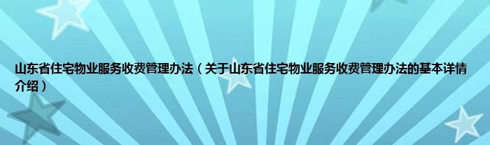 山东省住宅物业服务收费管理办法(关于山东省住宅物业服务收费管理办法的基本详情介绍)