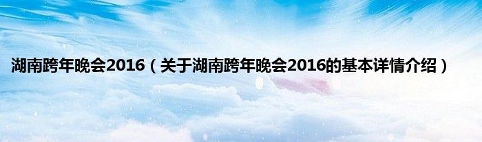 湖南跨年晚会2016(关于湖南跨年晚会2016的基本详情介绍)