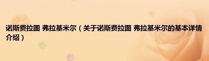 诺斯费拉图 弗拉基米尔(关于诺斯费拉图 弗拉基米尔的基本详情介绍)