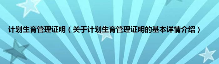 本文关于计划生育管理证明的基本详情介绍就讲解完毕,希望对大家有所帮助。