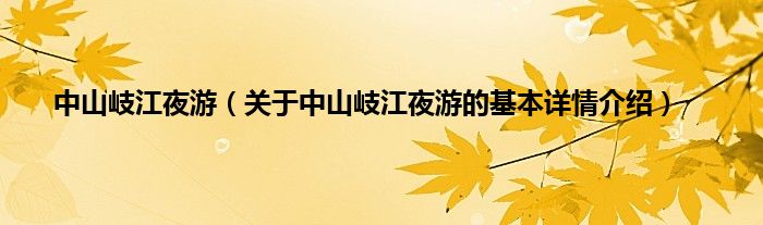 中山岐江夜游(关于中山岐江夜游的基本详情介绍)