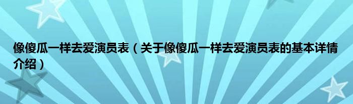 像傻瓜一样去爱演员表(关于像傻瓜一样去爱演员表的基本详情介绍)