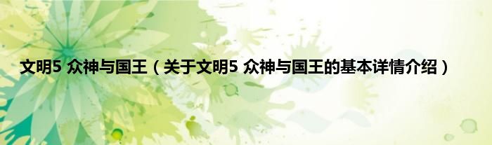 大家好我是小蝌蚪,文明5 众神与国王,关于文明5 众神与国王的基本详情介绍很多人还不知道,那么现在让我们一起来看看吧!