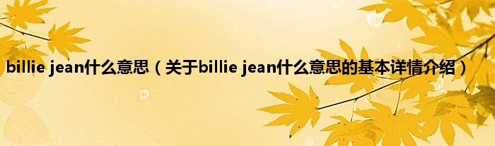 本文关于billie jean什么意思的基本详情介绍就讲解完毕,希望对大家有所帮助。