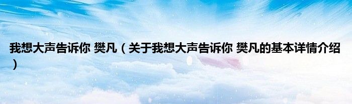 本文关于我想大声告诉你 樊凡的基本详情介绍就讲解完毕,希望对大家有所帮助。