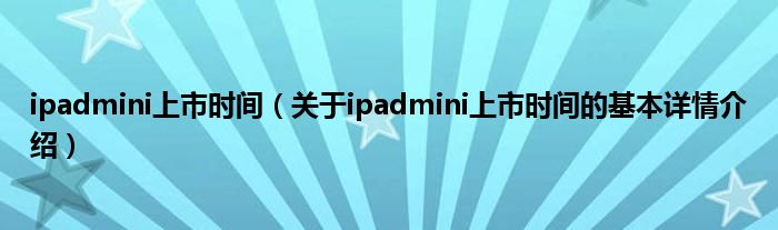 本文关于ipadmini上市时间的基本详情介绍就讲解完毕,希望对大家有所帮助。