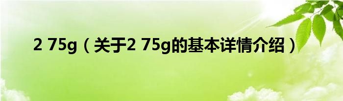 本文关于2 75g的基本详情介绍就讲解完毕,希望对大家有所帮助。
