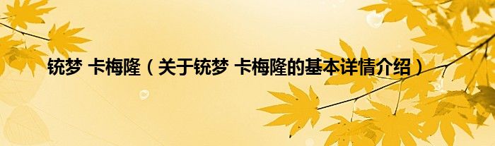 大家好我是小蝌蚪,铳梦 卡梅隆,关于铳梦 卡梅隆的基本详情介绍很多人还不知道,那么现在让我们一起来看看吧!