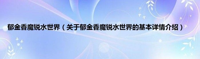 本文关于郁金香魔锐水世界的基本详情介绍就讲解完毕,希望对大家有所帮助。