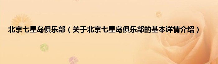 本文关于北京七星岛俱乐部的基本详情介绍就讲解完毕,希望对大家有所帮助。
