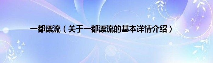 本文关于一都漂流的基本详情介绍就讲解完毕,希望对大家有所帮助。