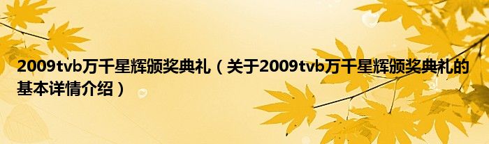 本文关于2009tvb万千星辉颁奖典礼的基本详情介绍就讲解完毕,希望对大家有所帮助。