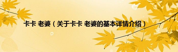 卡卡老婆(关于卡卡老婆的基本详情介绍)