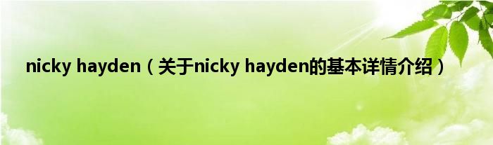 本文关于nicky hayden的基本详情介绍就讲解完毕,希望对大家有所帮助。