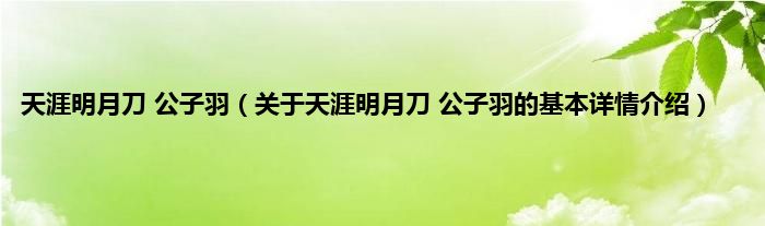 本文关于天涯明月刀 公子羽的基本详情介绍就讲解完毕,希望对大家有所帮助。