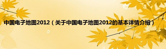 本文关于中国电子地图2012的基本详情介绍就讲解完毕,希望对大家有所帮助。