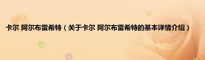 大家好我是小蝌蚪,卡尔 阿尔布雷希特,关于卡尔 阿尔布雷希特的基本详情介绍很多人还不知道,那么现在让我们一起来看看吧!