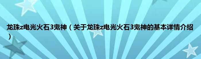 龙珠z电光火石3鬼神(关于龙珠z电光火石3鬼神的基本详情介绍)