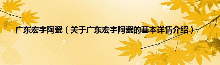 本文关于广东宏宇陶瓷的基本详情介绍就讲解完毕,希望对大家有所帮助。