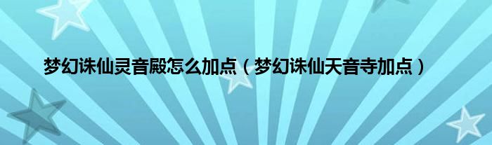梦幻诛仙灵音殿怎么加点(梦幻诛仙天音寺加点)