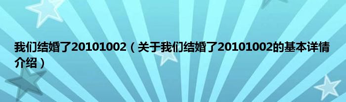 本文关于我们结婚了20101002的基本详情介绍就讲解完毕,希望对大家有所帮助。