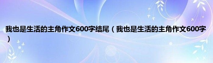 以上就是【我也是生活的主角作文600字结尾,我也是生活的主角作文600字】相关内容。