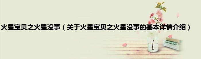 本文关于火星宝贝之火星没事的基本详情介绍就讲解完毕,希望对大家有所帮助。
