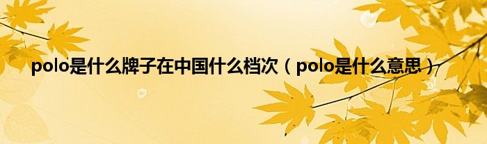 以上就是【polo是什么牌子在中国什么档次,polo是什么意思】相关内容。