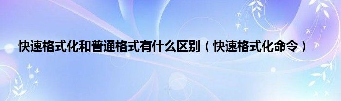 以上就是【快速格式化和普通格式有什么区别,快速格式化命令】相关内容。