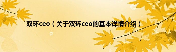 本文关于双环ceo的基本详情介绍就讲解完毕,希望对大家有所帮助。