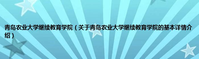 本文关于青岛农业大学继续教育学院的基本详情介绍就讲解完毕,希望对大家有所帮助。