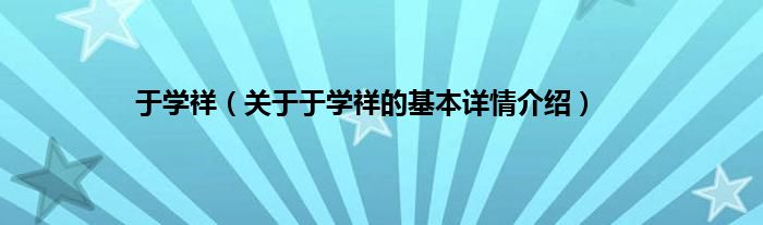 本文关于于学祥的基本详情介绍就讲解完毕,希望对大家有所帮助。