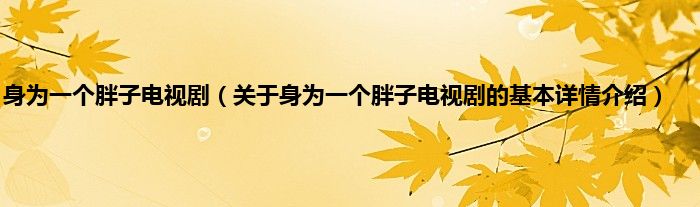 本文关于身为一个胖子电视剧的基本详情介绍就讲解完毕,希望对大家有所帮助。