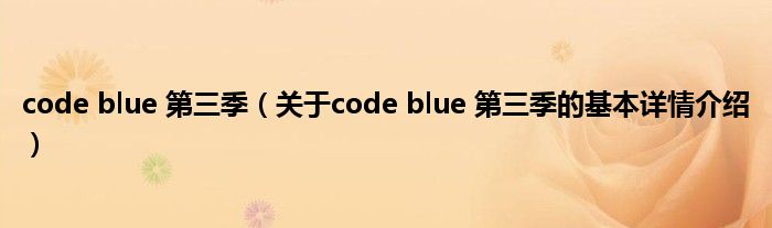 本文关于code blue 第三季的基本详情介绍就讲解完毕,希望对大家有所帮助。