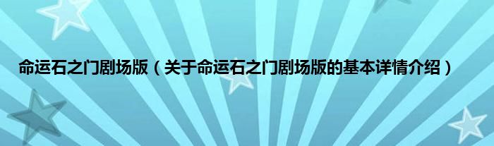 本文关于命运石之门剧场版的基本详情介绍就讲解完毕,希望对大家有所帮助。
