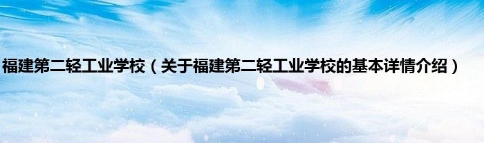 本文关于福建第二轻工业学校的基本详情介绍就讲解完毕,希望对大家有所帮助。