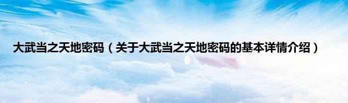 本文关于大武当之天地密码的基本详情介绍就讲解完毕,希望对大家有所帮助。